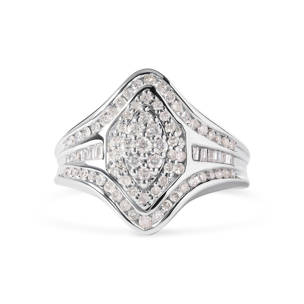 14K WG Round and Baguette Cut Diamond Cluster Ring